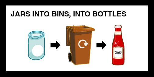 All glass and plastic bottles, sauce or mayonnaise jars, drink cans, used tin foil and foil trays from pies can be put into the brown bin.